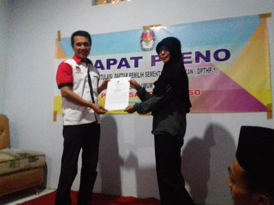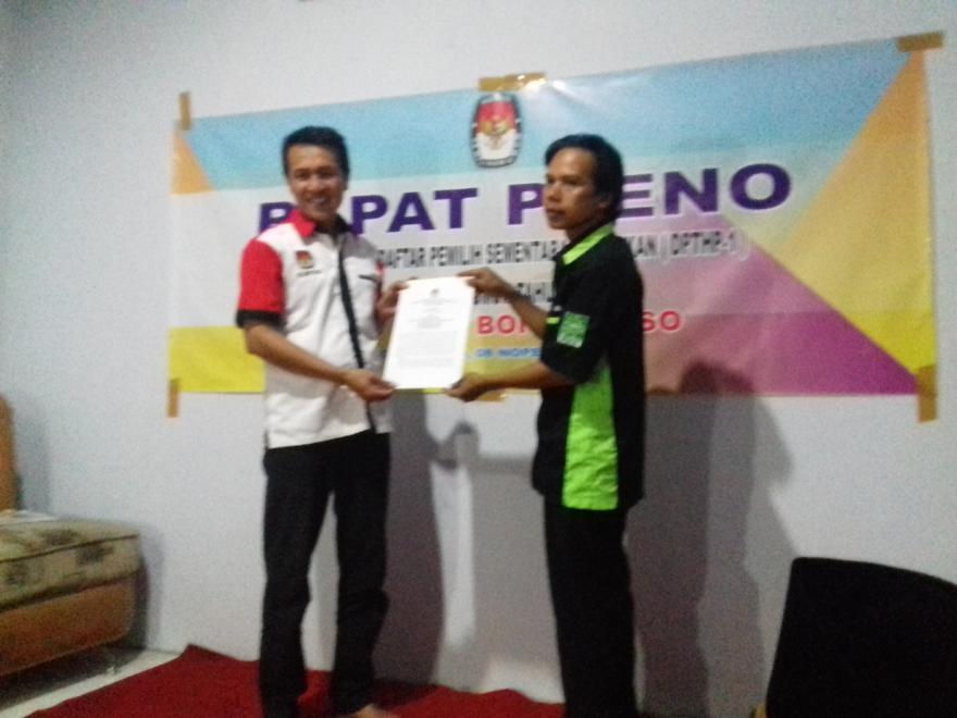 Bertempat di rumah Bpk Hadi saputro, salah satu anggota PPS Desa Bondowoso telah dilaksanakan rapat pleno Daftar Pemilih Tetap Hasil Pemitakhiran (DPTHP 1) pada hari kamis tanggal 8 nopember 2018 pada pukul 19.30 wib sd selesai.